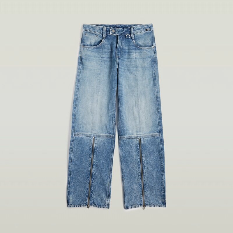 Jean Judee Biker is designed in a loose fit and offers a low waist. The coin pocket is repositioned towards the inside waist, leaving only the rivets to show. Open the zippers at the hem to create a slit. The small slit at the back can be reduced by the shank buttons applied. The key ring at the waist adds detail.