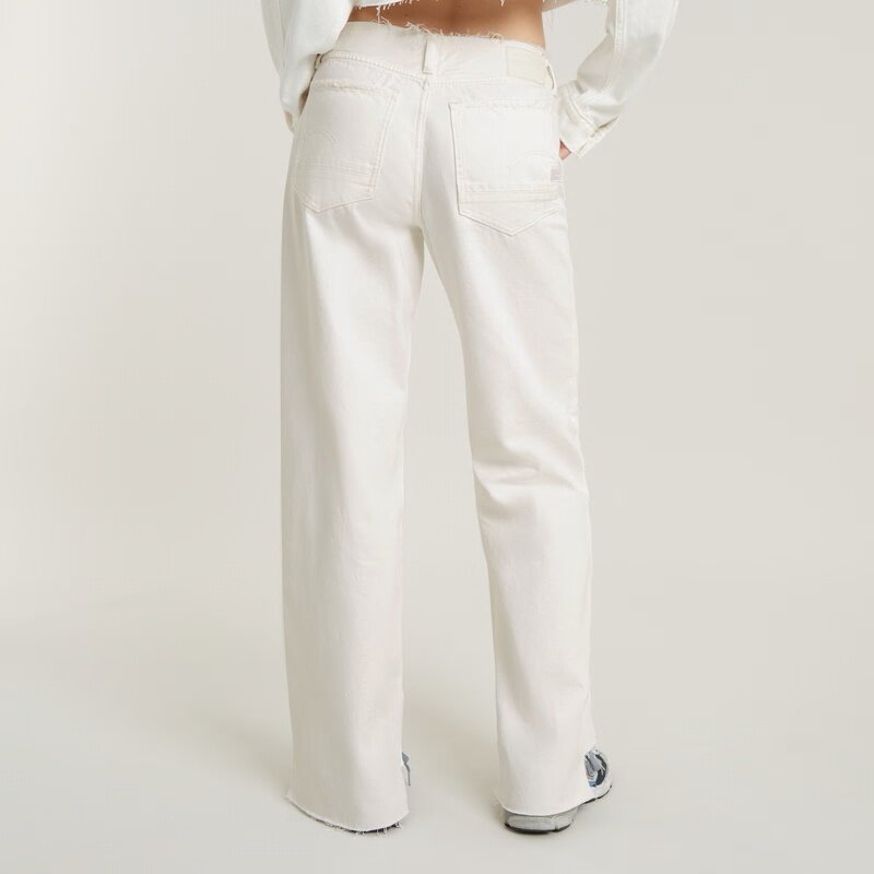 This Cut Waistband version of the Judee jean is created in a loose fit and shows a raw edge finish. The coin pocket is placed hidden inside the waist. We've finetuned the fit. By reducing the width around the hip and crotch and shortening the leg length, the overall look is improved and offers more shape.