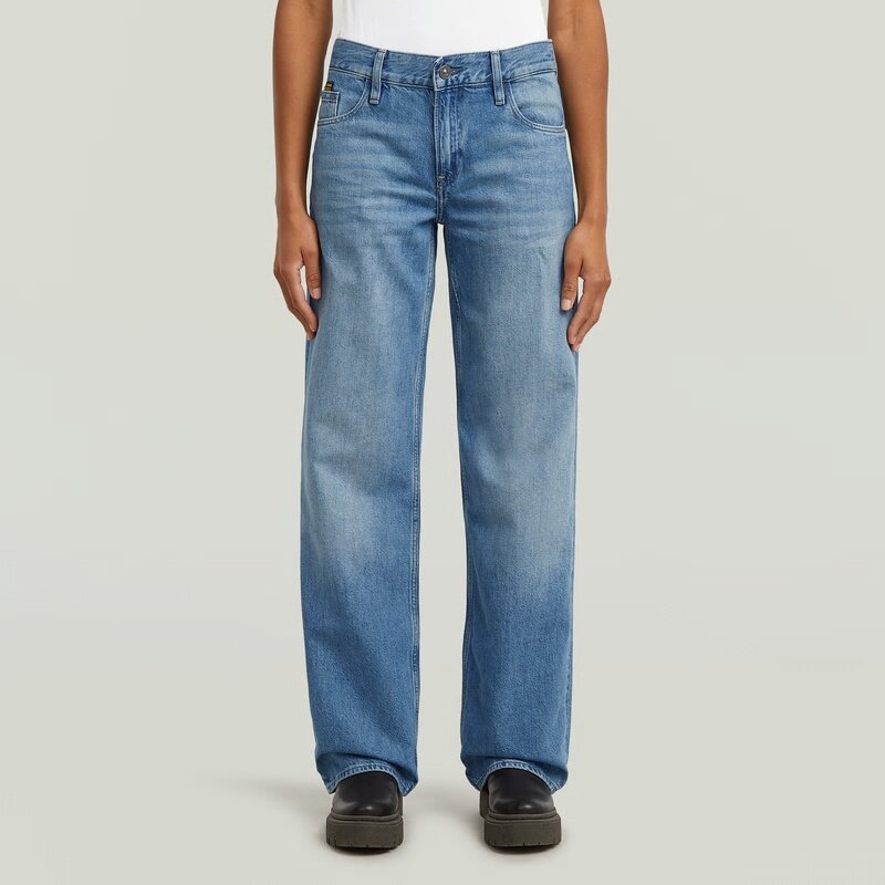 Jean Judee is designed in a loose fit and offers a low waist. We've finetuned the fit. By reducing the width around the hip and crotch and shortening the leg length, the overall look is improved and offers more shape.