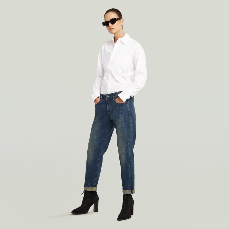 The Kate has a boyfriend fit with a low waist and dropped crotch. Featuring relaxed leg and folded-up hem, it makes for a perfect casual look.