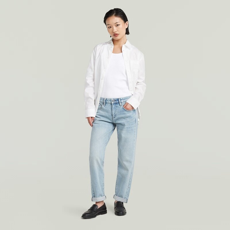The Kate has a boyfriend fit with a low waist and dropped crotch. Featuring relaxed leg and folded-up hem, it makes for a perfect casual look.