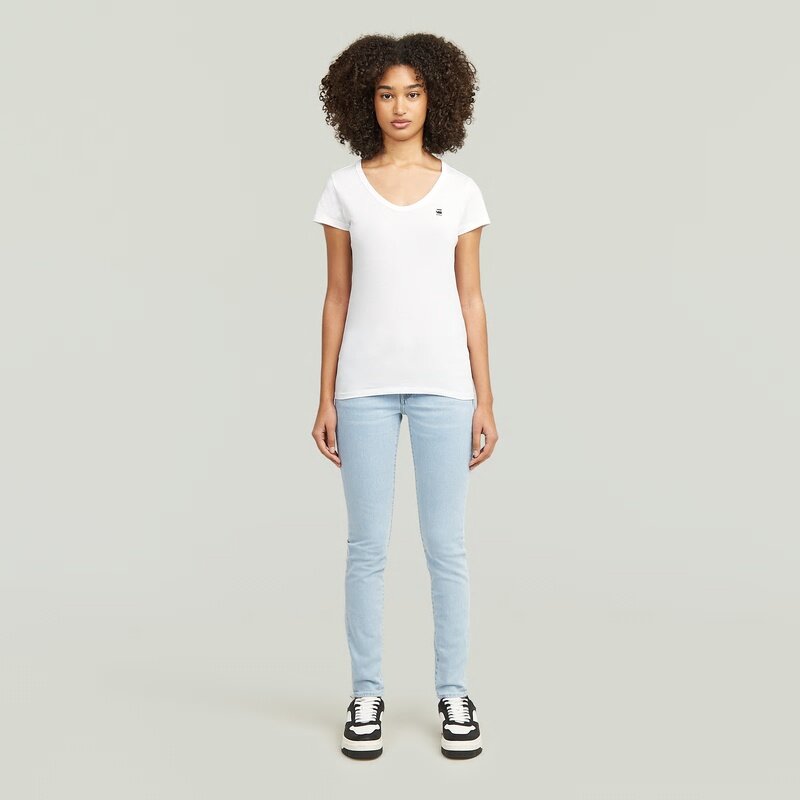 The Lhana is designed in a skinny fit and has a mid waist, featuring a waistband that eliminates gap. This jean fits tightly from the waist down.