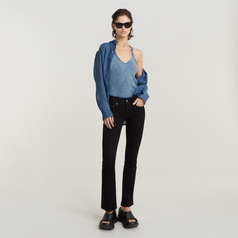 The Midge Bootcut is a classic jean with a slim leg that slightly flares out into a bootcut shape. It features an adjustable cinch at the waistband to tailor the fit to the wearer's body.