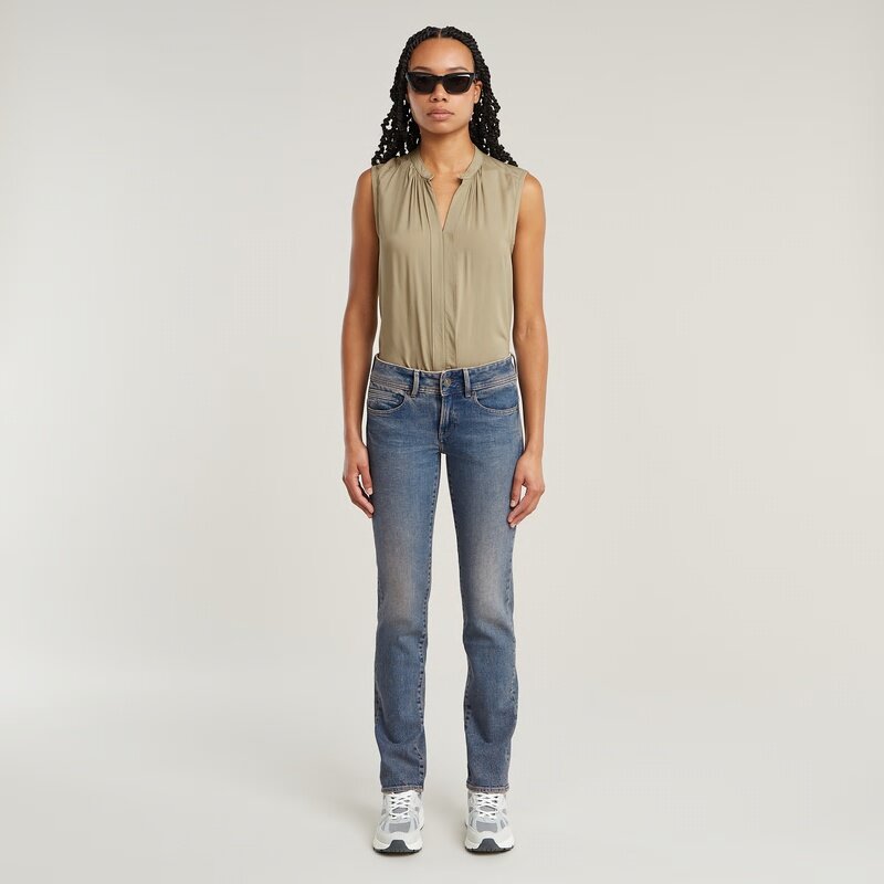 The Midge Slim Straight jeans offer a slim fit with a low waist and a long length.