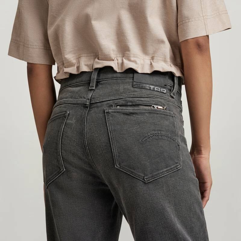 The Noxer Straight jeans is tight on the hips and thigh while the leg falls straight. The embroidered wokkies and the half concealed chunky zipper placed inside the right back pocket, a detail taken from the motorcycle leather pants, adds character.