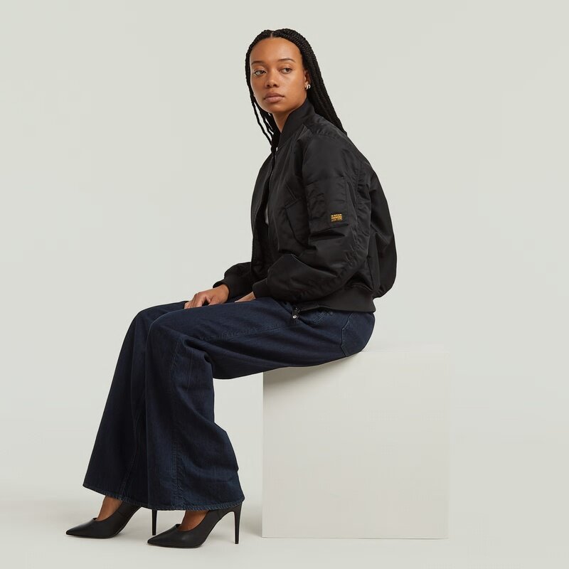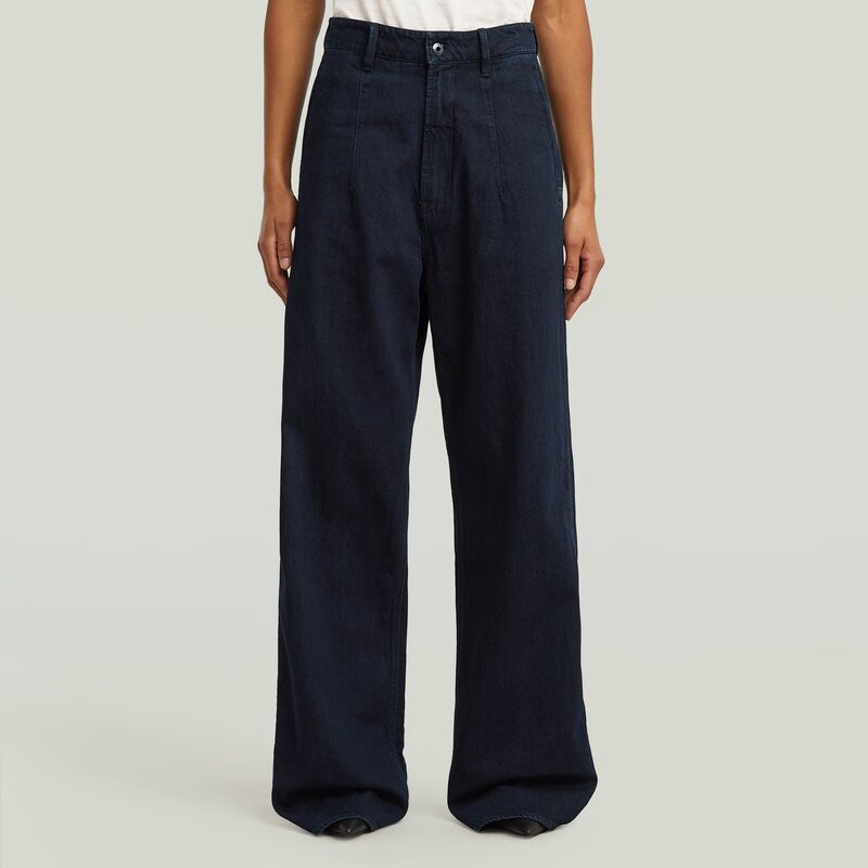 The Roos Chino Loose Jeans feature a relaxed fit with a high-waisted design, offering a contemporary and comfortable style. The long length and zip-button closure add to its functionality.