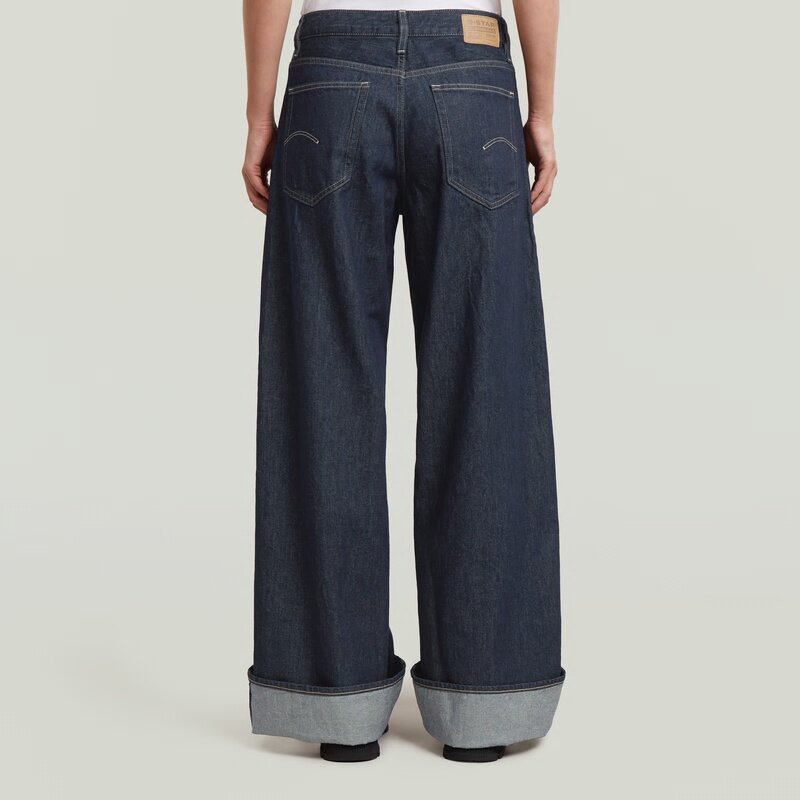 The Roxx Wide Jeans feature a loose fit with a low waist and long length, offering a relaxed and contemporary style. A turned-up hem adds a distinctive finishing touch.