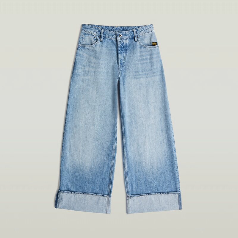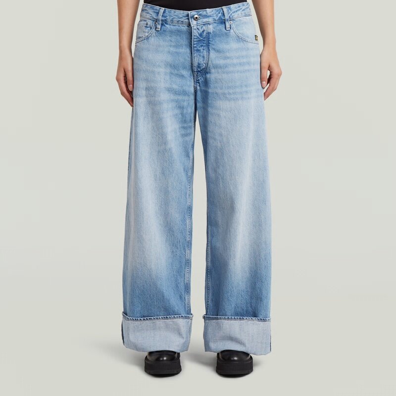 The Roxx Wide Jeans feature a loose fit with a low waist and long length, offering a relaxed and contemporary style. A turned-up hem adds a distinctive finishing touch.
