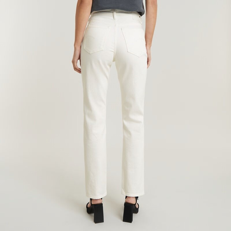 The design of these Viktoria jeans shows a straight fit with a high waist. Offering a bit more room around the top to proceed into a classic straight leg.