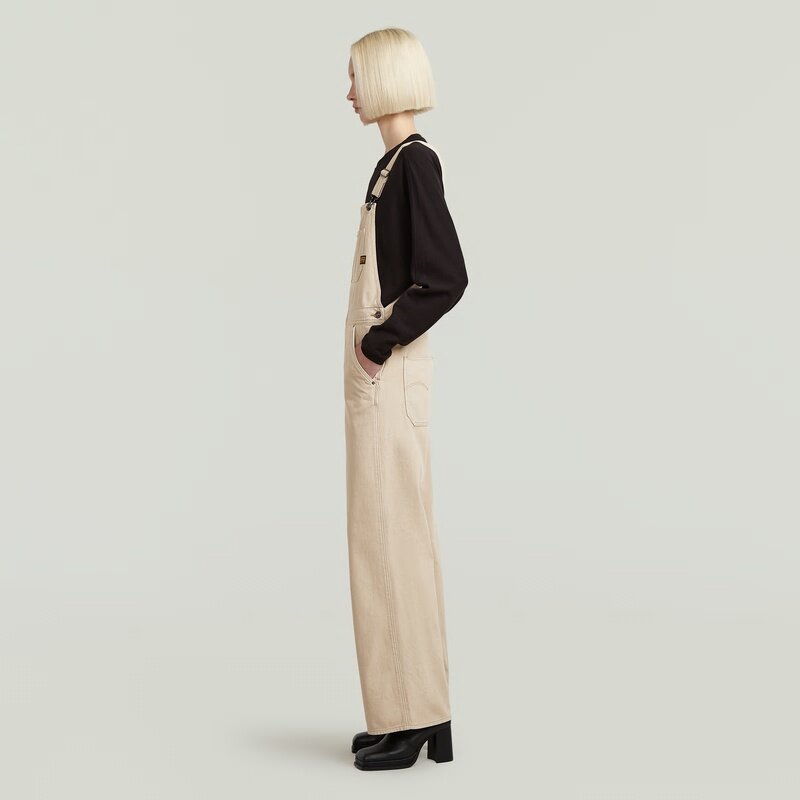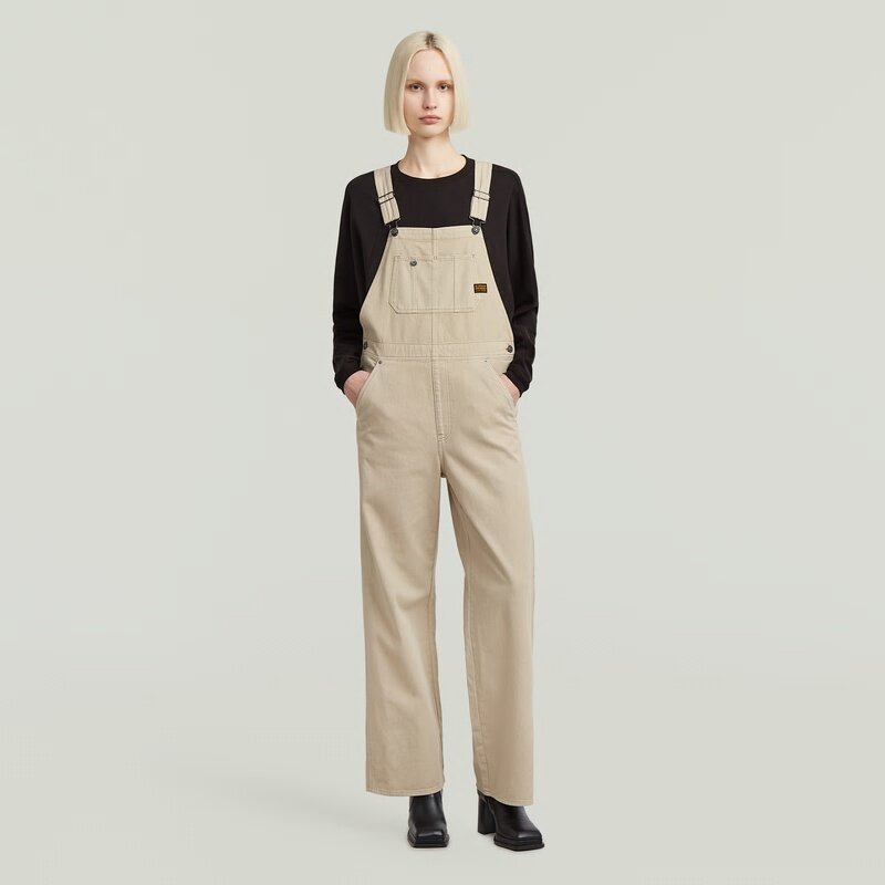 The Straight Dungaree offers a sleek design with a high waist and racerback straps, perfect for a modern look. Button closure and long length add to its stylish appeal.