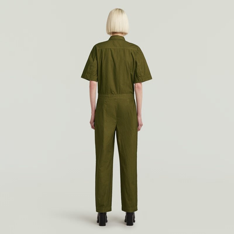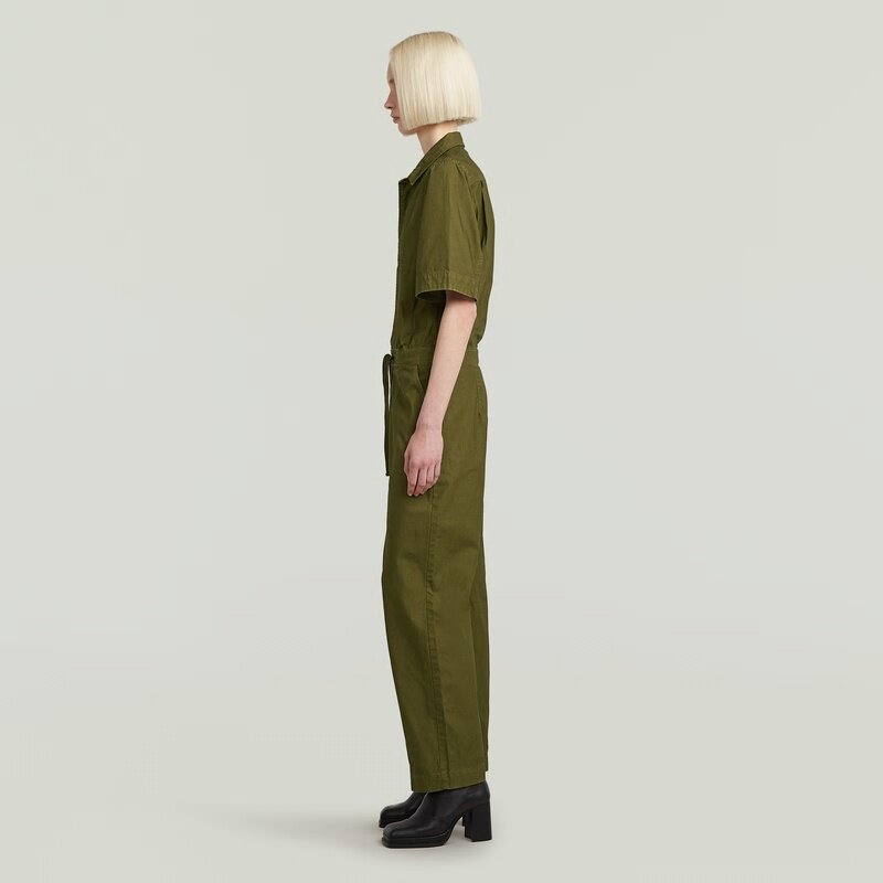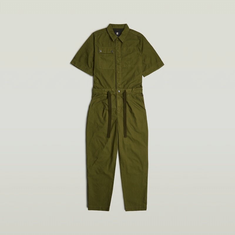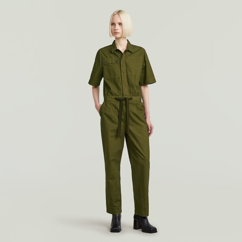 The Army Jumpsuit offers a regular fit with a high waist and snap closure, combining style and functionality.