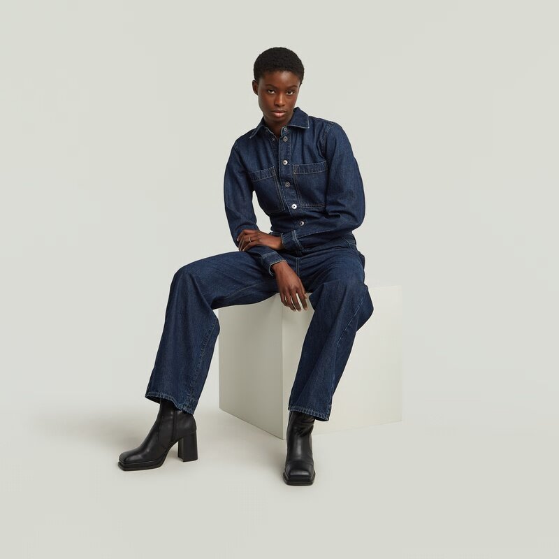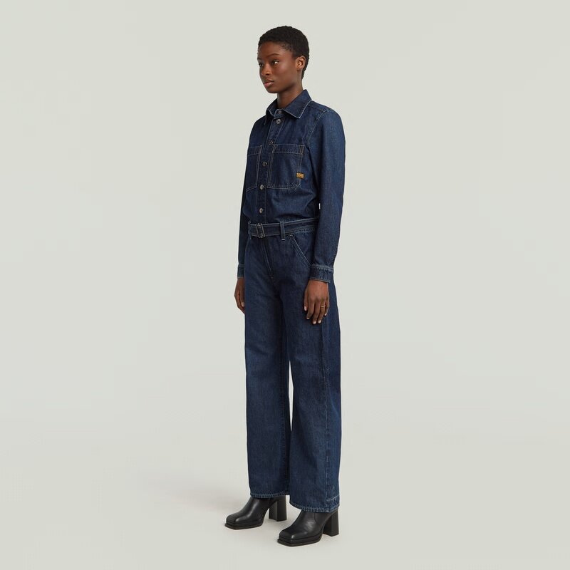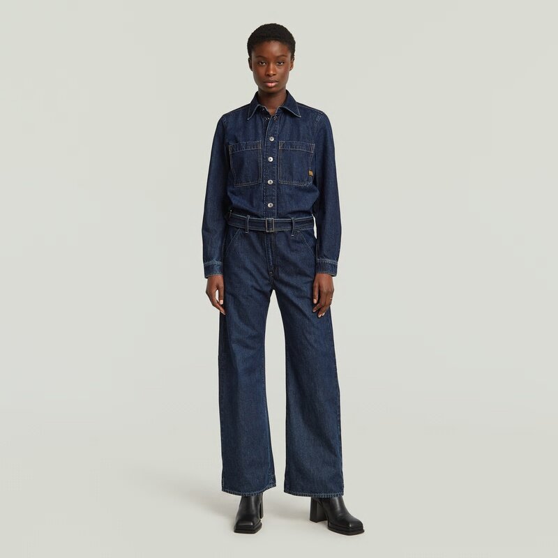 Jumpsuit Belted 3D Loose offers a relaxed fit with a zip and snap closure. The chest pockets and inset pockets add functionality.