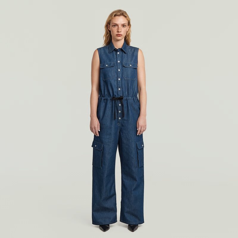 Soft Utility Jumpsuit offers a relaxed fit with a shirt collar and button closure. It features practical pockets for added functionality.