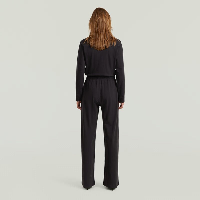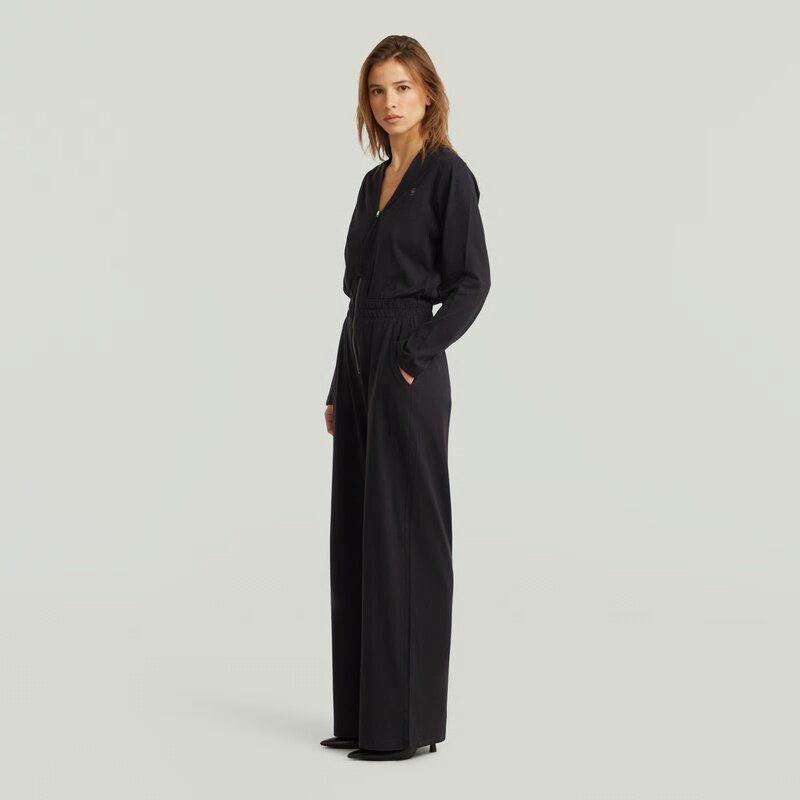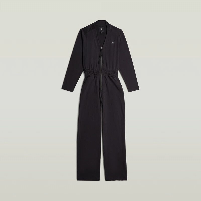 The Track Jumpsuit Long Sleeve combines a sleek design with functional details, featuring a zip closure and a stand-up collar.