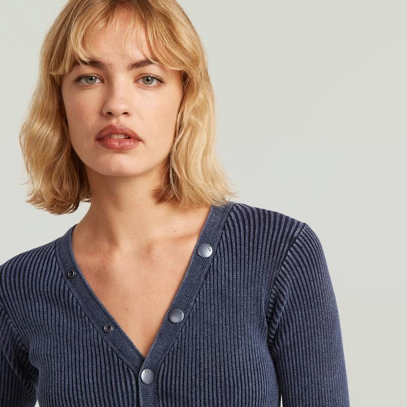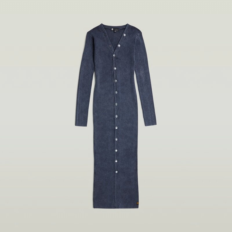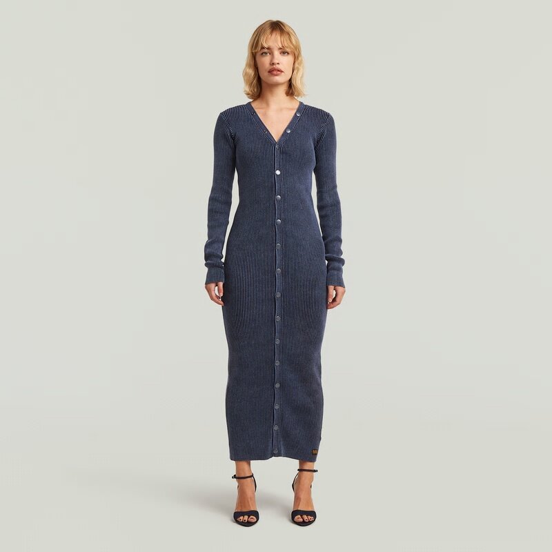 This long cardigan dress features a slim fit and a V-neckline, offering a refined and elegant look. The button-through closure adds versatility to the design, making it a standout piece.