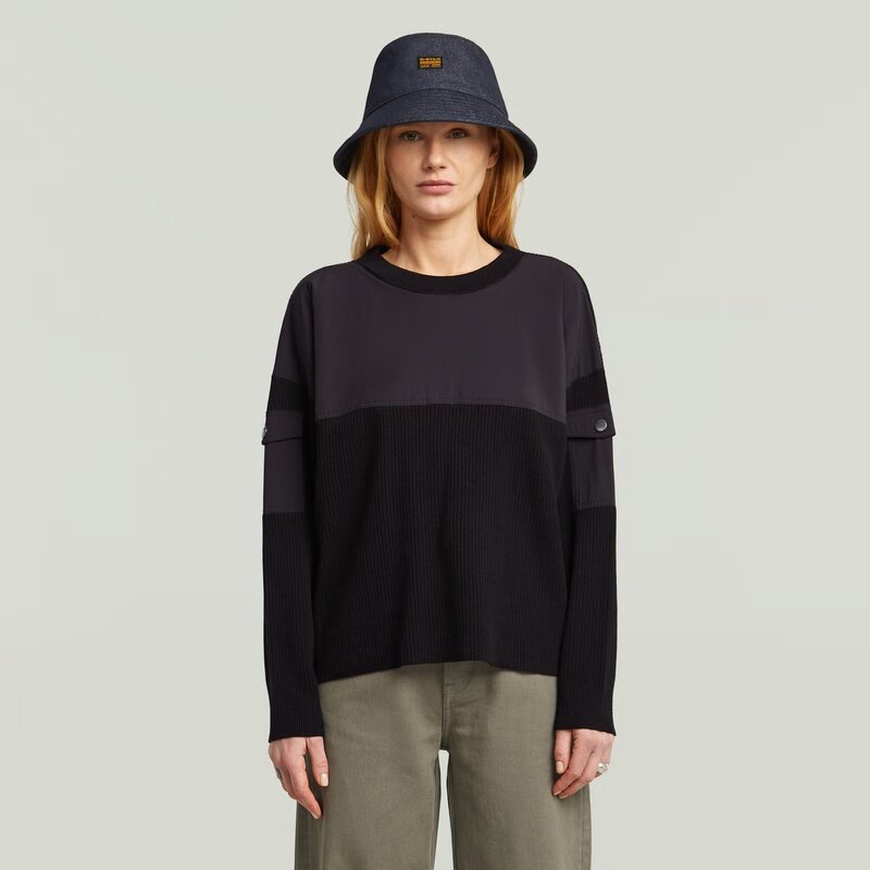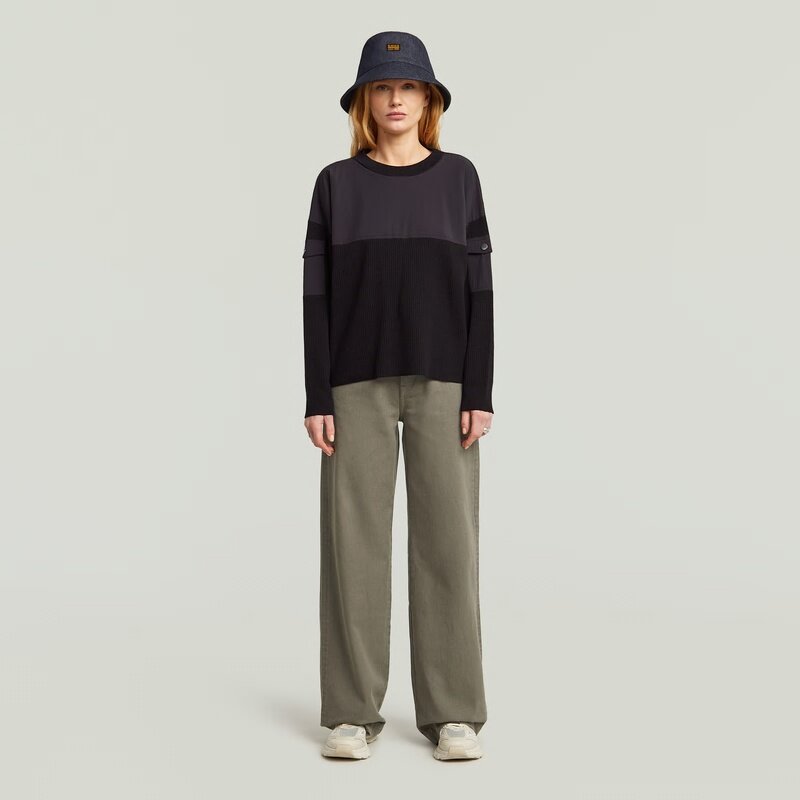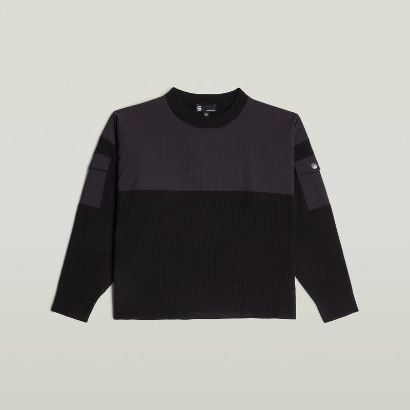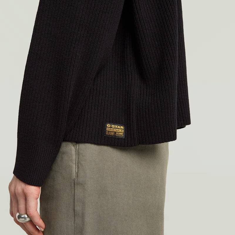This ribbed knit cardigan features a loose fit and a round neckline, offering a comfortable and versatile design.