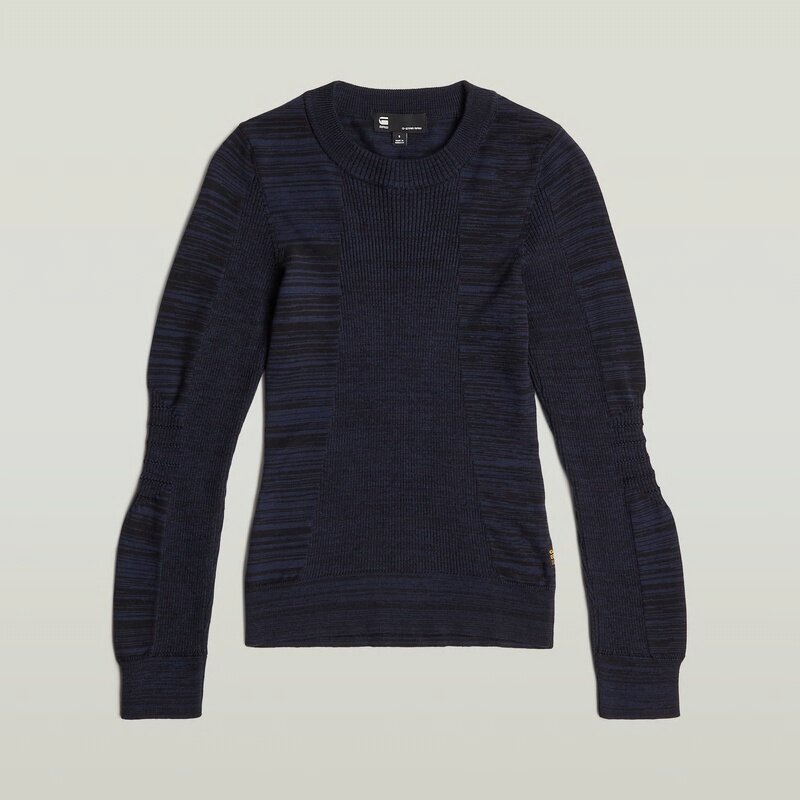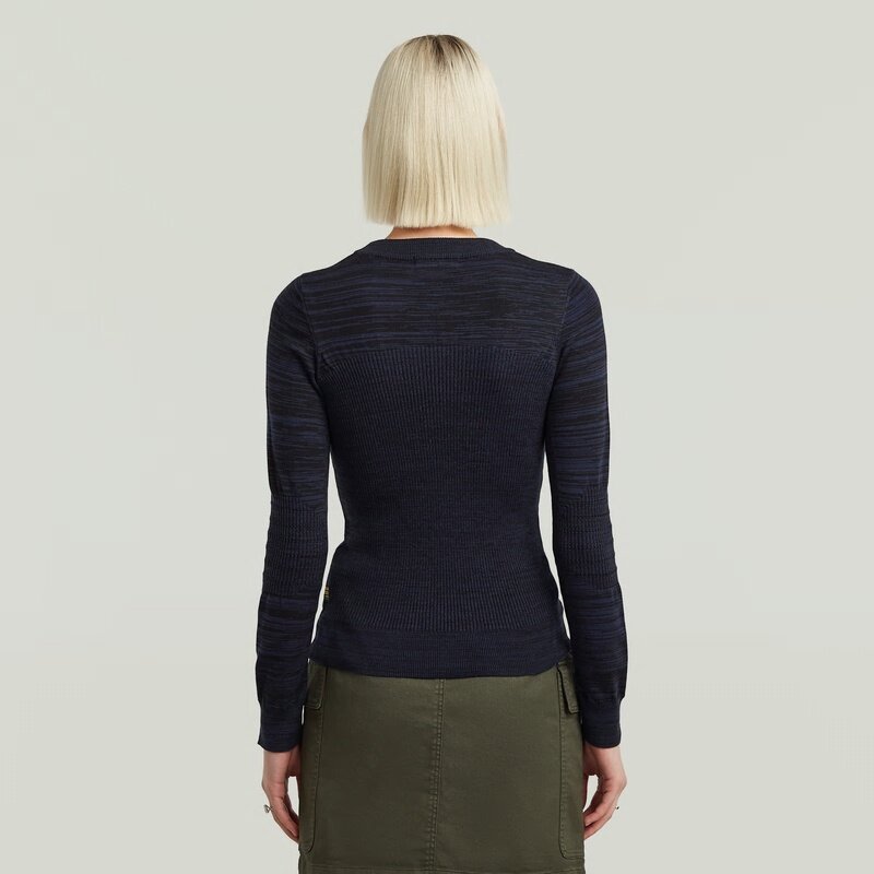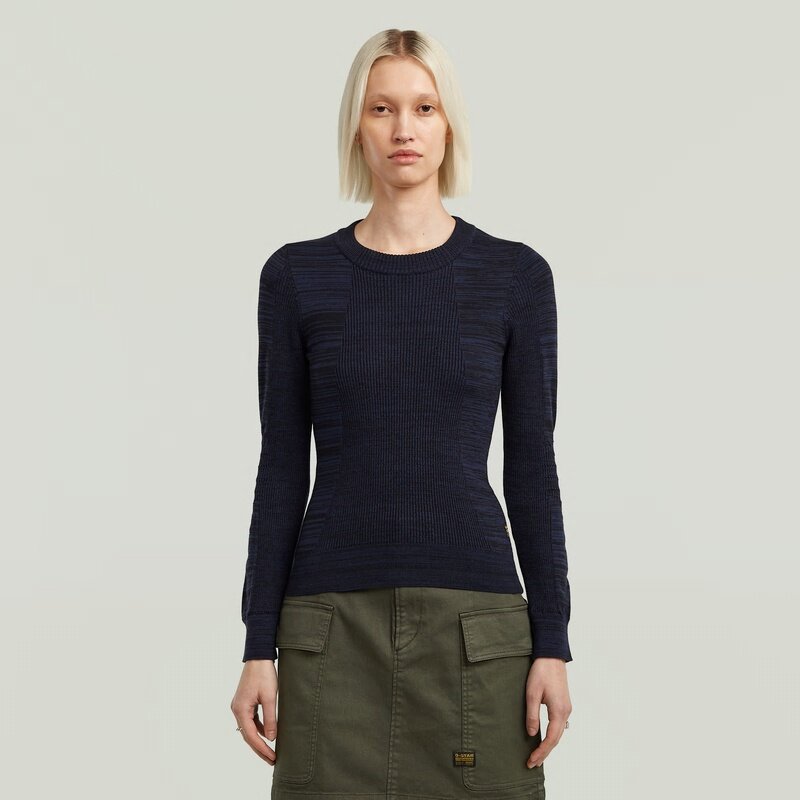 The 3D Biker Knit Slim Knit features a slim fit with a round neck, offering a modern and sleek look.