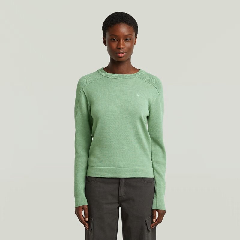 The Core Knit Pullover offers a comfortable regular fit with a classic round neck and long sleeves, perfect for everyday wear.