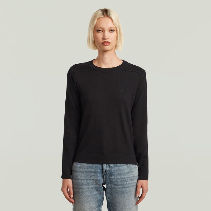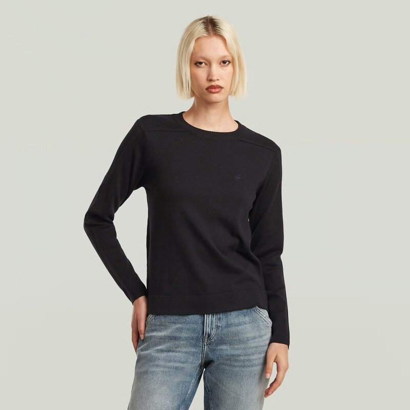 The Core Knit Pullover offers a comfortable regular fit with a cropped length and round neck design.