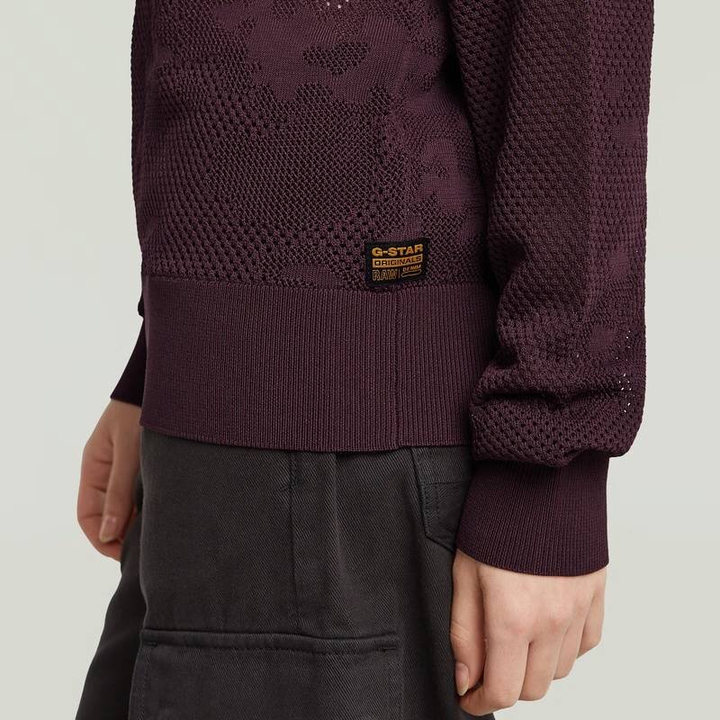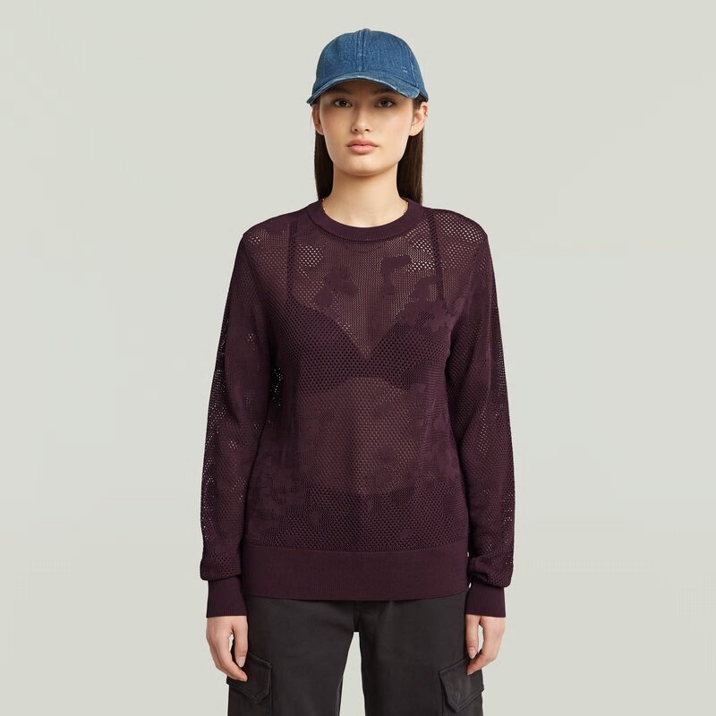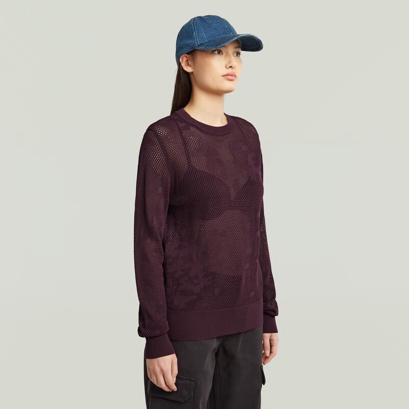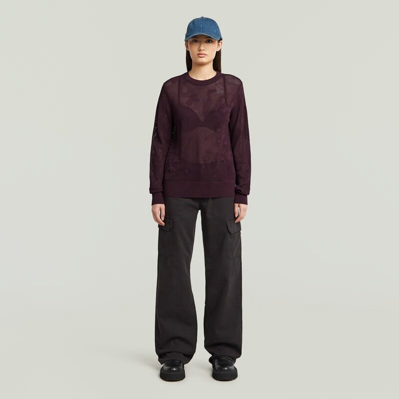 The Pointelle knit pullover features a round neck and long sleeves, offering a regular fit with a cropped length.