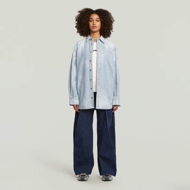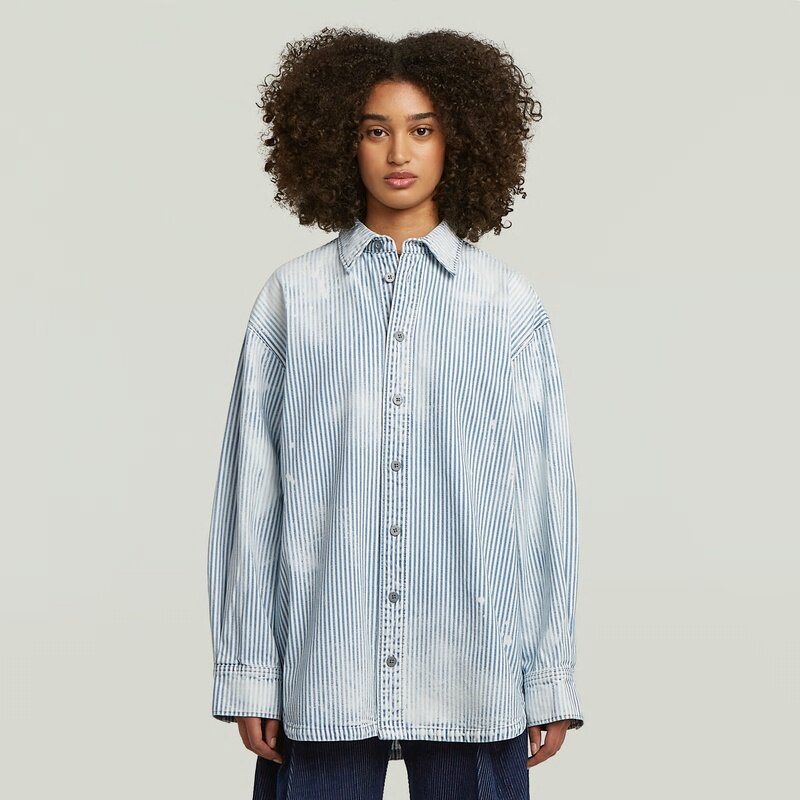 Maxi Overshirt is designed with an oversized fit, featuring a button closure and a classic shirt collar.