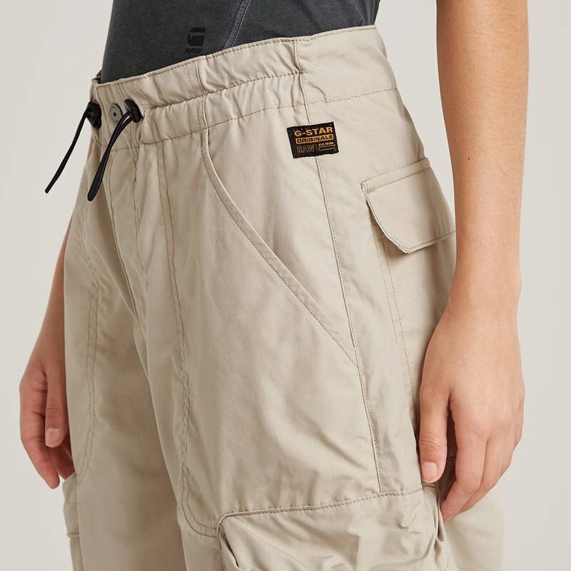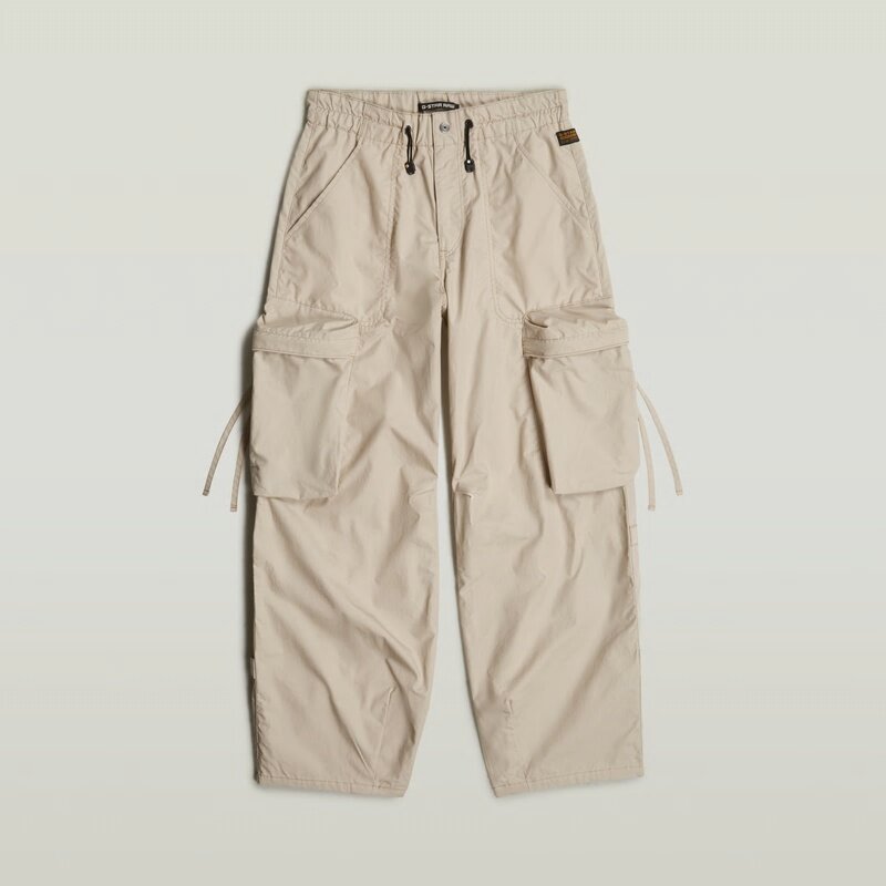The Balloon cargo pants offer a high waist and a loose fit, featuring multiple pockets for added functionality.