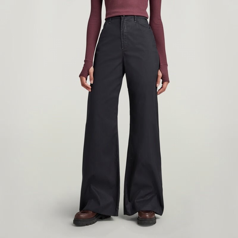 These Deck pants offer an ultra-high waist on a wide-legged silhouette. The G-Star Raw Deck pants are designed to fit smoothly around the waist and hips and open up to a wide leg. The hem is easy to trim. As it’s kept unfolded, you can shorten it to your perfect length if needed. Combine them with high heels to make it complete.