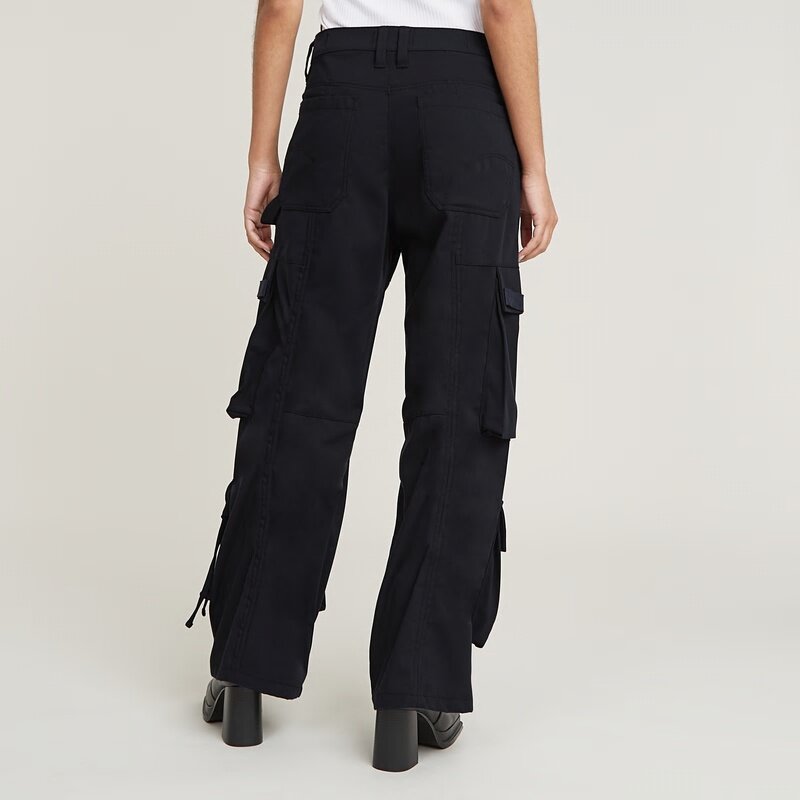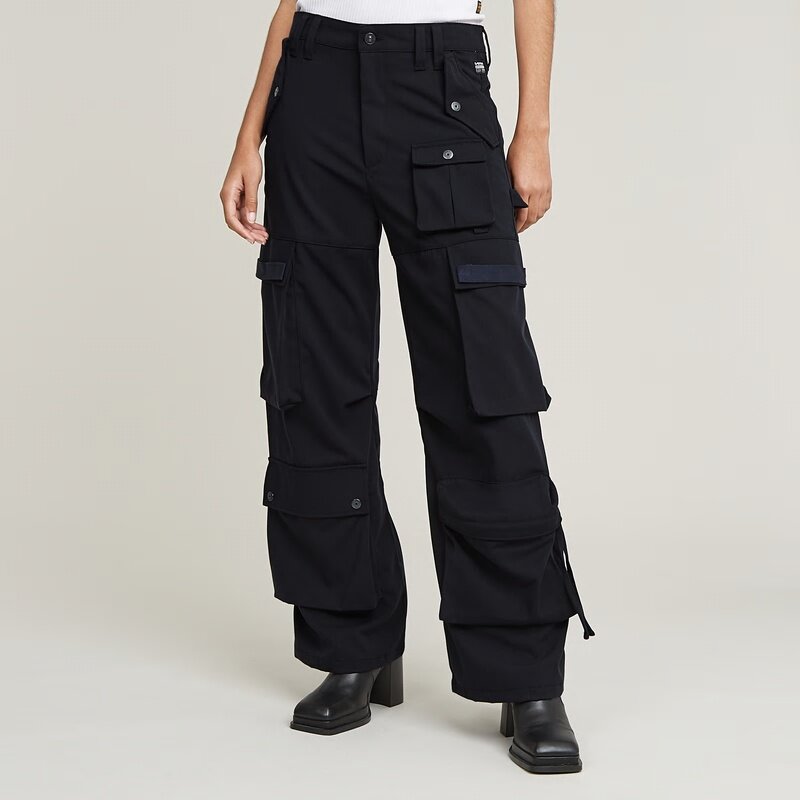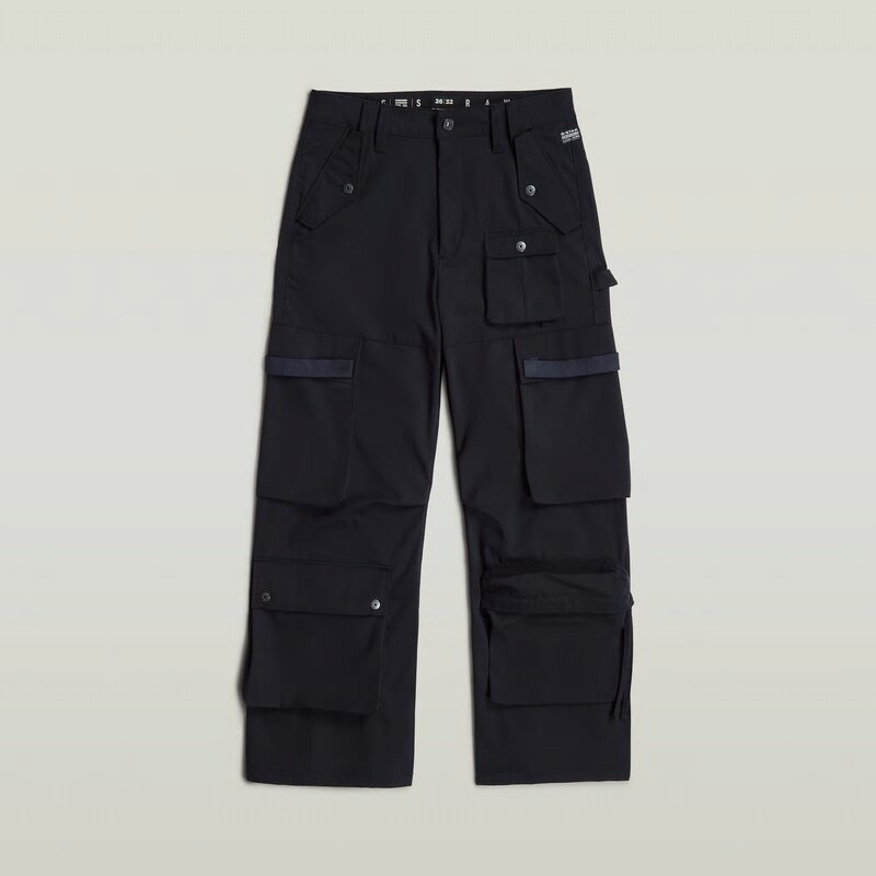 Flap pockets at the waist, snap button closure, mini cargo pocket underneath