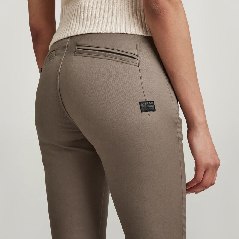 Concealed zippers at the waist pockets offer a woven tape detail at the top. Chino Weld is designed in a skinny fit with a high waist. Double welt back pockets show a button at one side. The hidden hook and bar closure ensures a clean finished waistband.