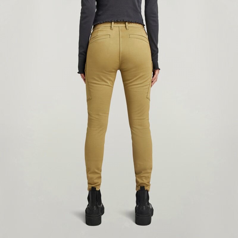 Stretchy army pants Blossite G-Shape are designed in a skinny fit and offer a high waist. Flap pockets at the thigh are reinforced with an additional stitch down along the edge. The inset pockets are finished with an additional tape along the entrance. Shaped seams at the back and single welt pockets complete it.