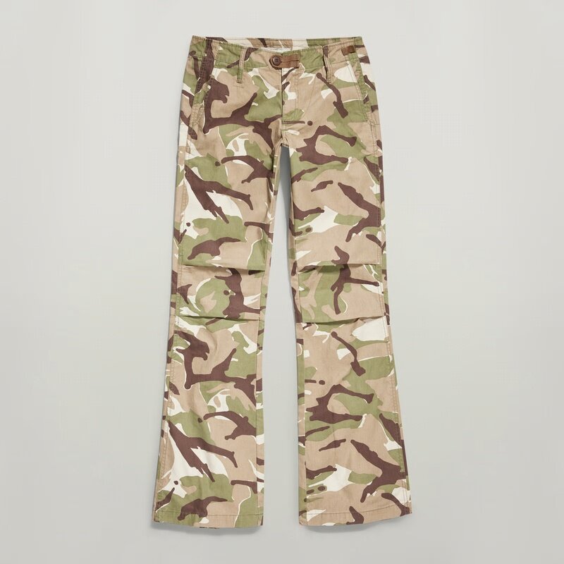 The Y2K Camou Zip pant is designed in a straight fit and offers zippers at the lower back to create a flared leg when prefered. The zipper fly is finished with a woven tab and button closure. These camo pants offer inset pockets and an additional zipper pocket at the backside. This style is from our limited edition Y2K collection which features styles from the 00’s, taken straight from our archive.