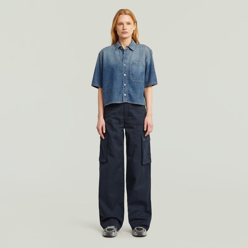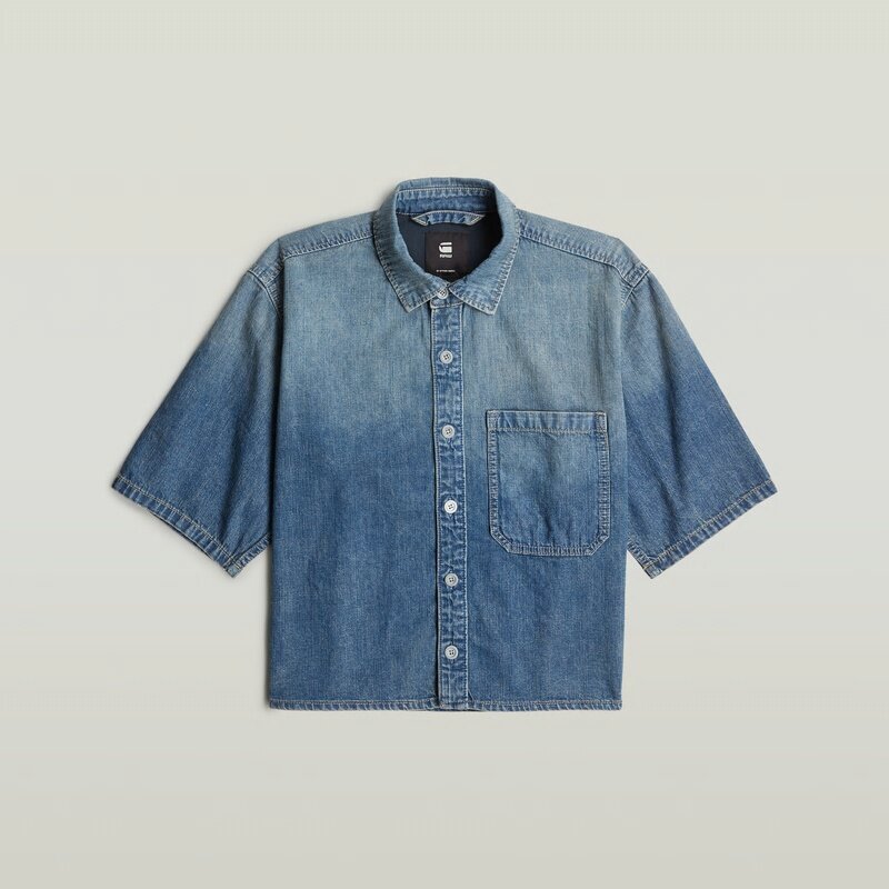 The Boxy Relaxed 1-Pocket Shirt features a relaxed fit with a cropped length and a classic shirt collar. Button closure adds a touch of simplicity.