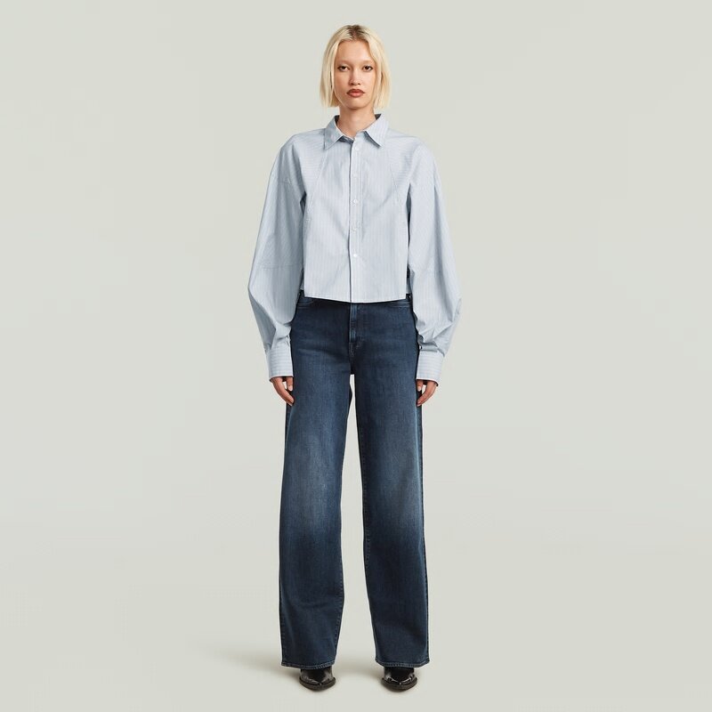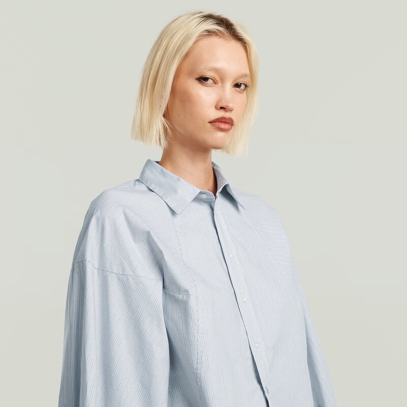 The Macro Balloon Shirt features a loose fit with long sleeves and a button closure.