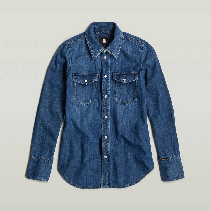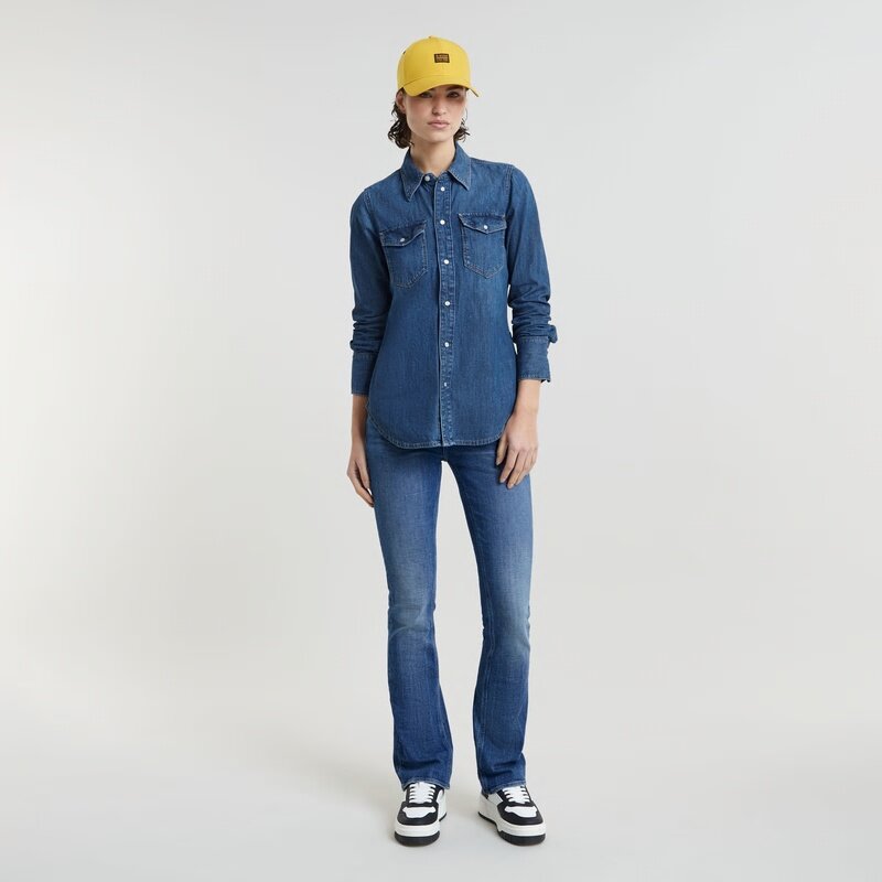 This G-Star RAW denim shirt is designed in a slim fit and shows a curved hem. The higher cuffs adds character.