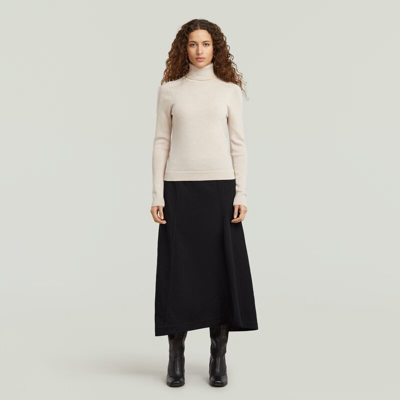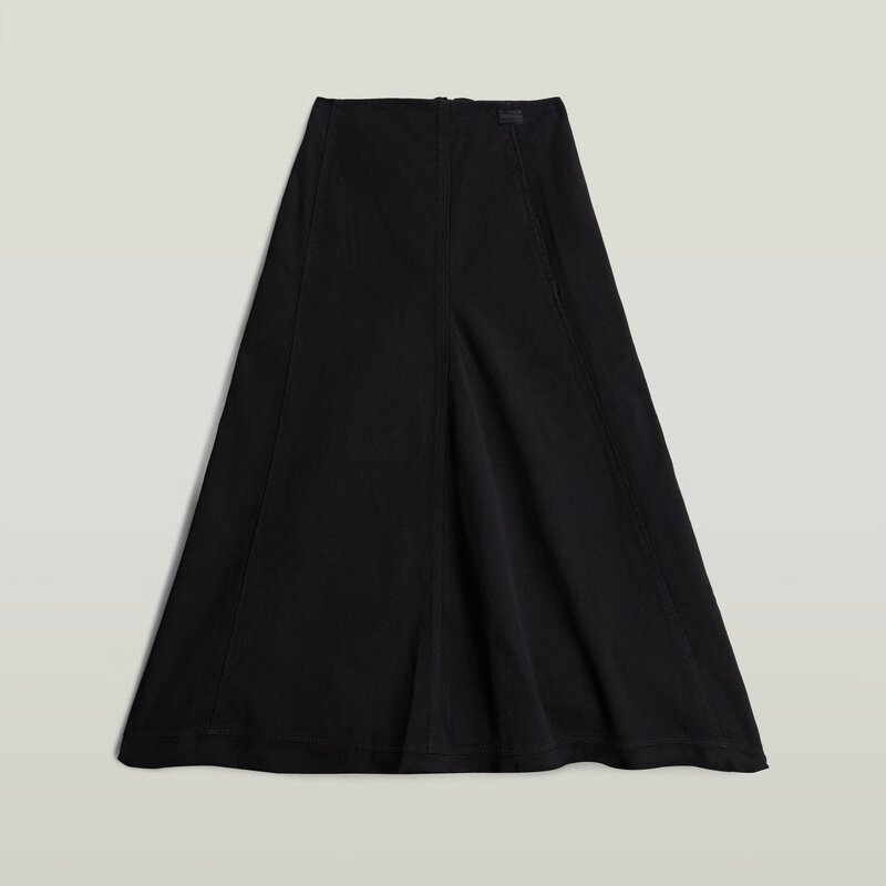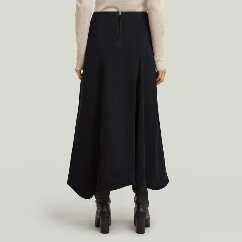 The Flare Skirt features a high-waisted A-line design, offering a flattering midi-length silhouette. Its zip closure ensures a secure fit, while the structured fabric adds a touch of elegance.