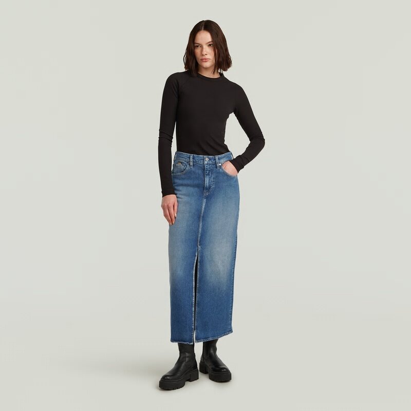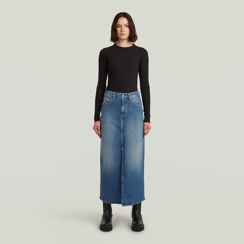 The Viktoria Long Skirt features a high waist and regular fit, complemented by a zip & button closure.