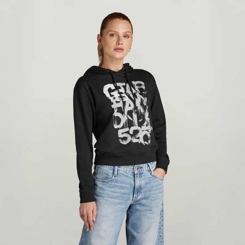 Hooded sweater Graphic 3 offers a roomy hood with a crossover front and drawstrings. This straight fitted style shows a graphic print at the chest. A kangaroo pocket completes this G-Star RAW hoodie.