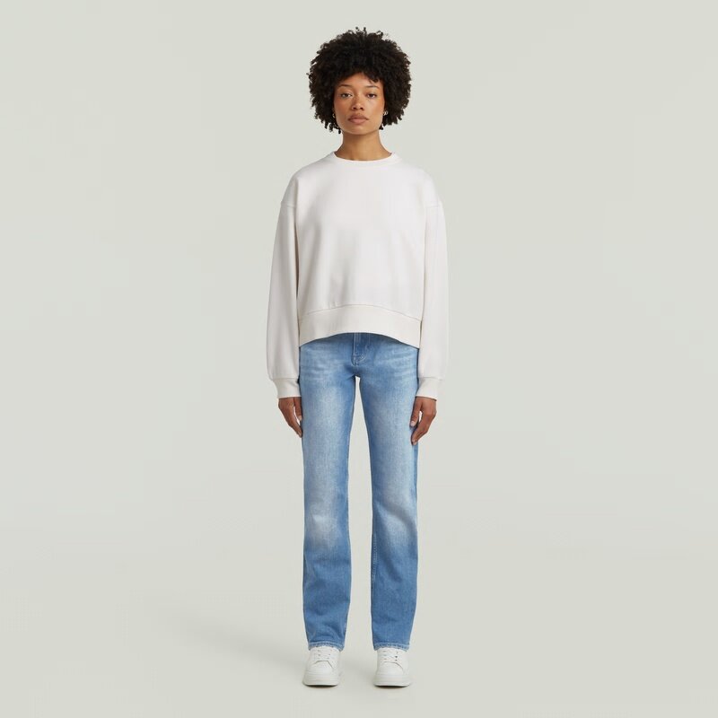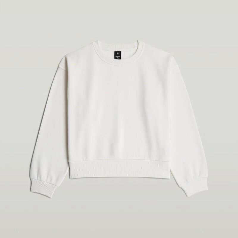 The Premium Core Cropped Loose sweater offers a relaxed fit with a round neck design.