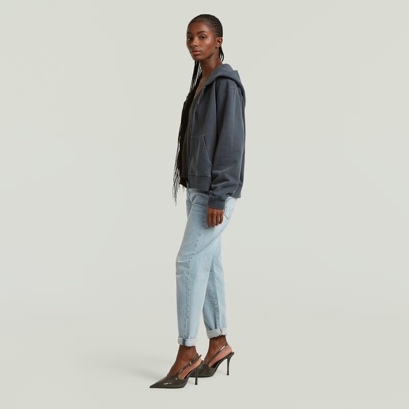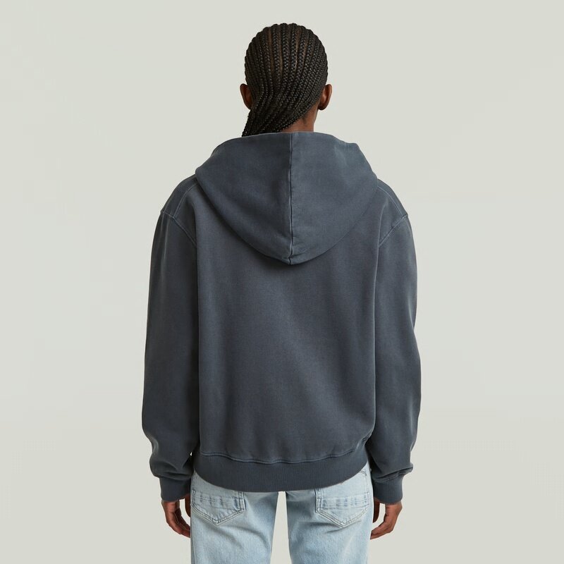 The Washed Hoodie Zip Relaxed Sweater features a casual design with a hood and zip closure, offering a versatile and laid-back style.