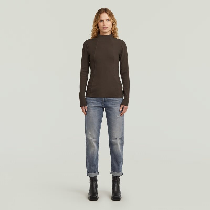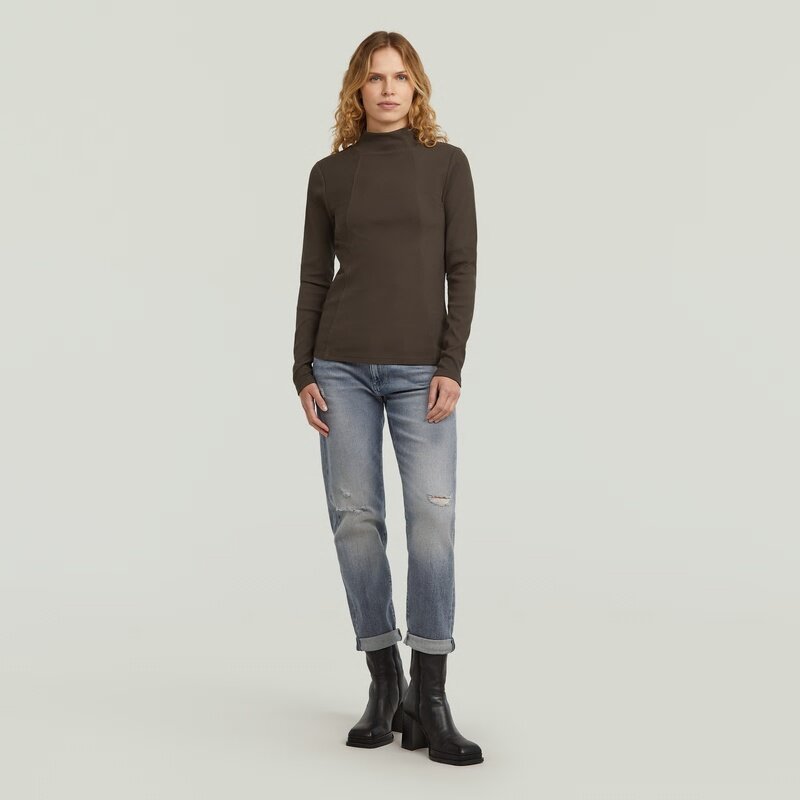 The A-Line Slim Mock T-Shirt features a slim fit and a funnel collar.