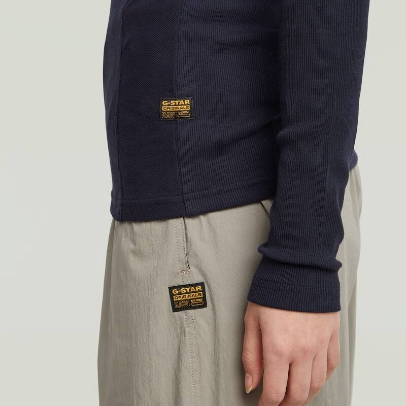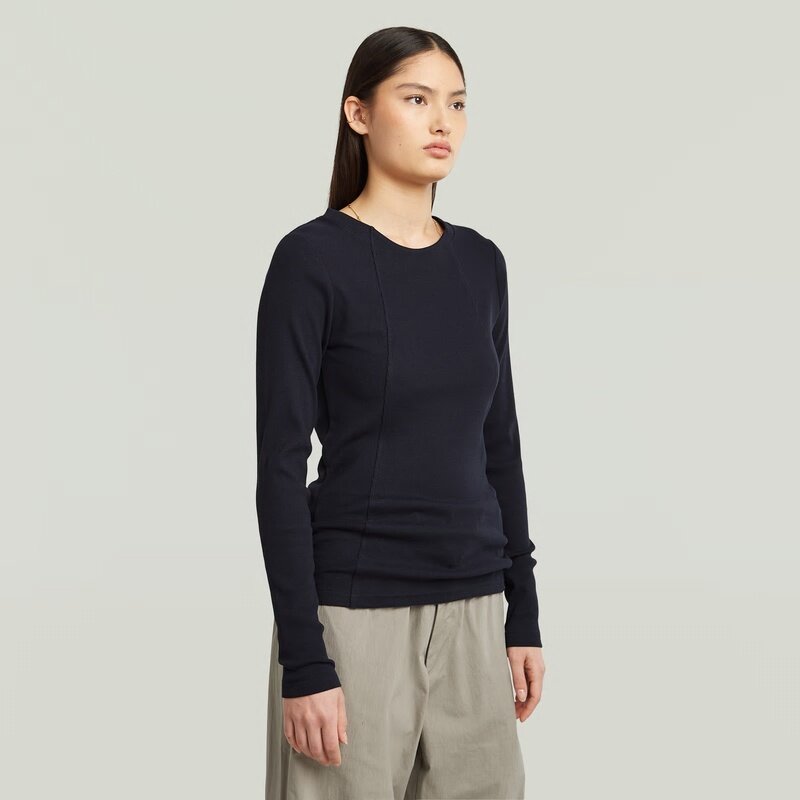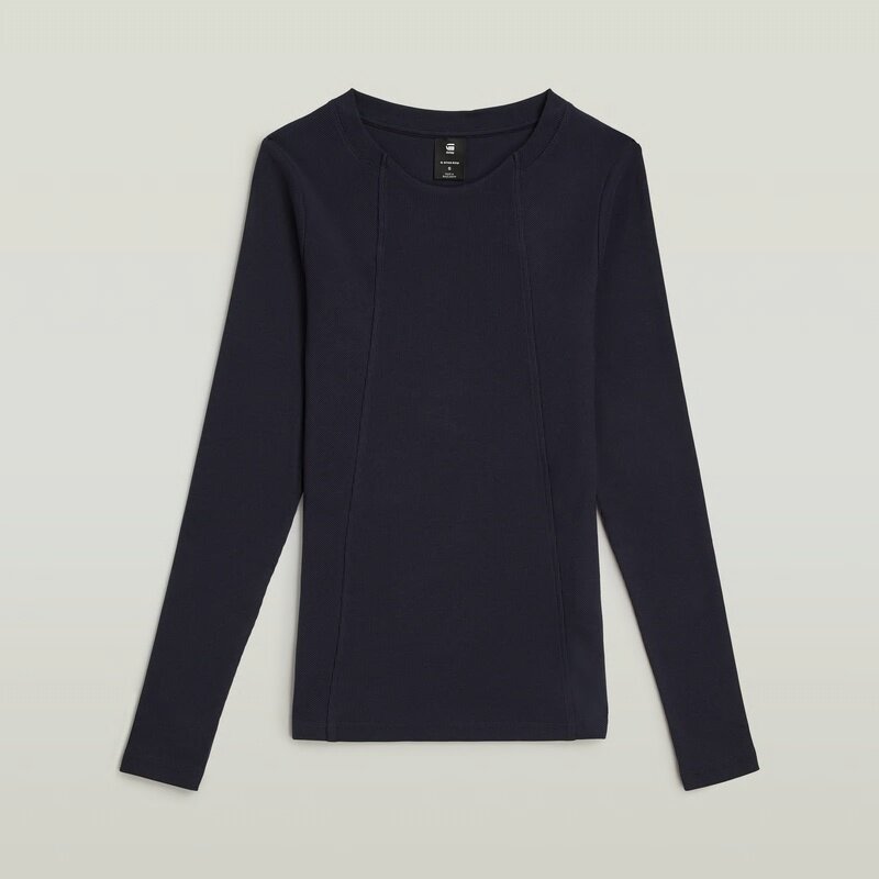 The A-Line Slim Ribbed T-Shirt features a slim fit with long sleeves and a round neck.