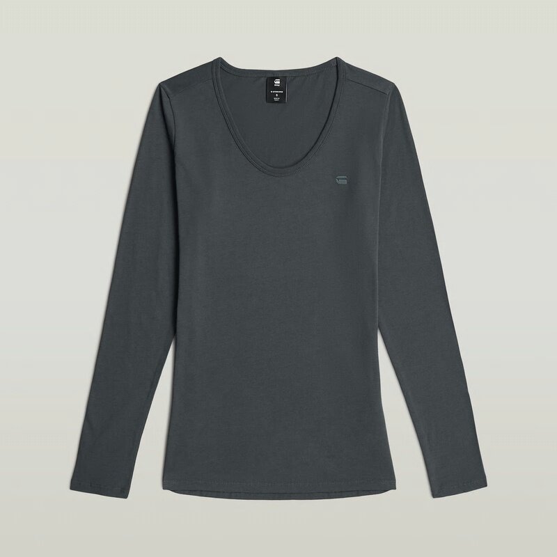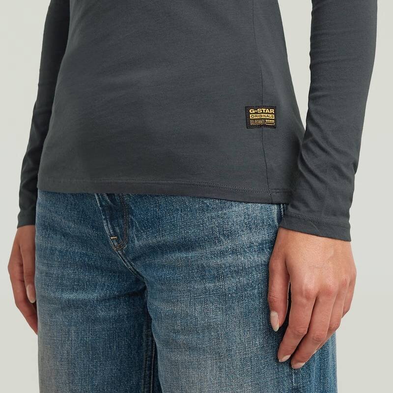 The Core Eyben Slim U T-Shirt features a sleek V-neck design and long sleeves, offering a streamlined and comfortable fit.