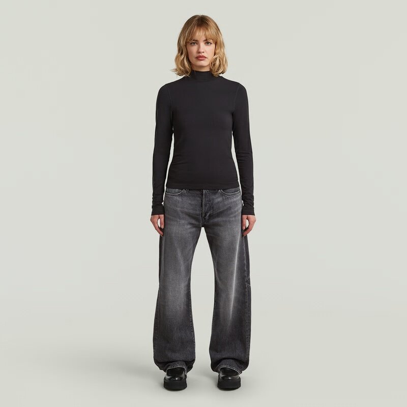This slim-fit long sleeve T-shirt features a funnel collar for a refined look. Designed with a regular length, it offers a sleek and modern aesthetic.