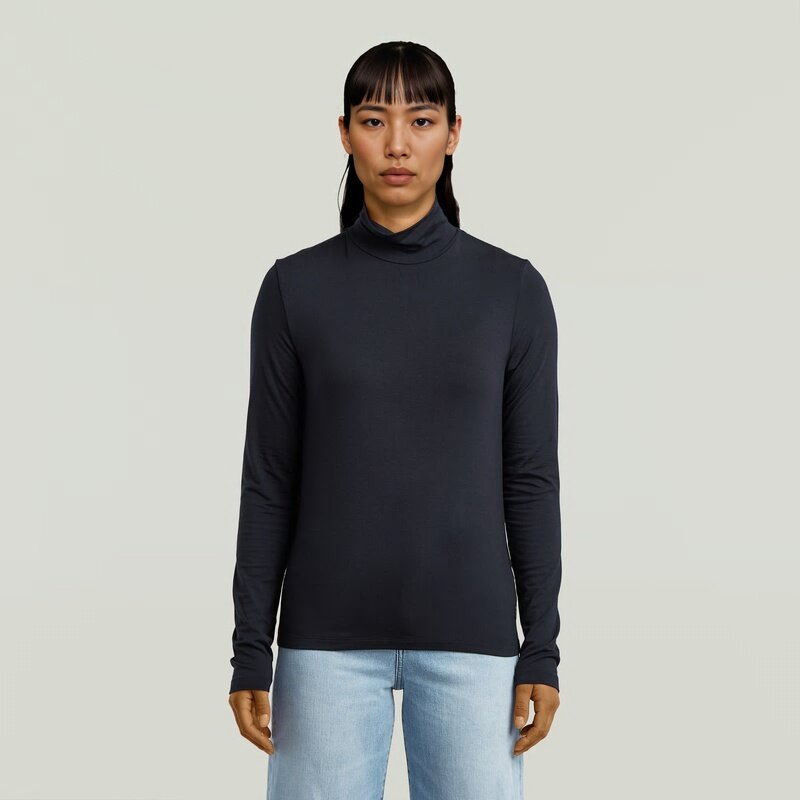 The Regular Mock T-Shirt features a classic round neck and long sleeves.