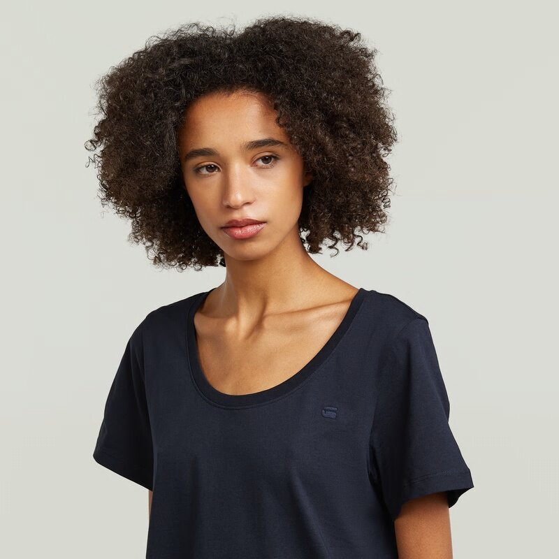 The Scoop Neck T-Shirt features a deep round neckline and a regular fit, offering a timeless and versatile design.