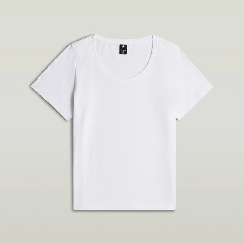 The Scoop Neck T-Shirt features a deep round neckline and a regular fit, offering a timeless and versatile design.