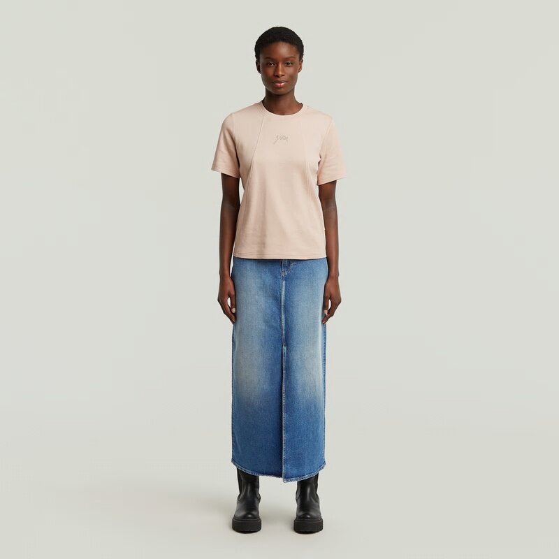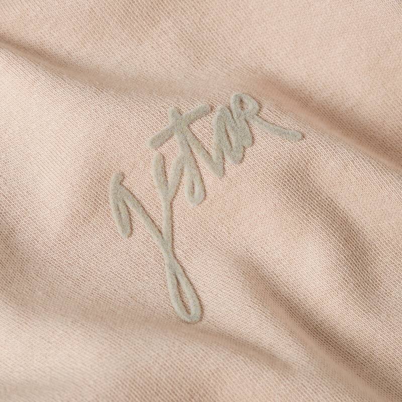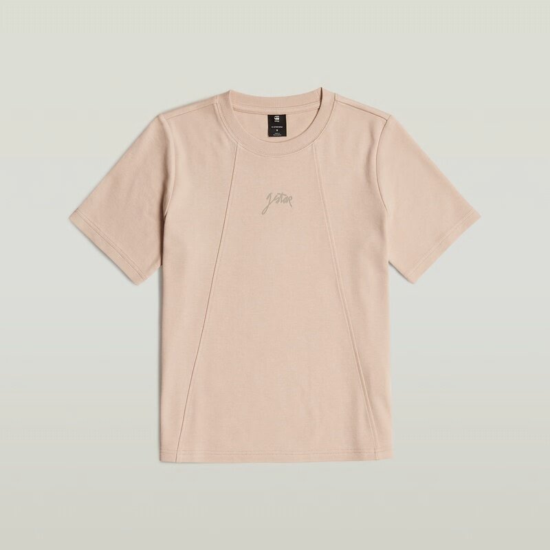 The Script T-Shirt features a round neck and short sleeves, adorned with a graphic detail.