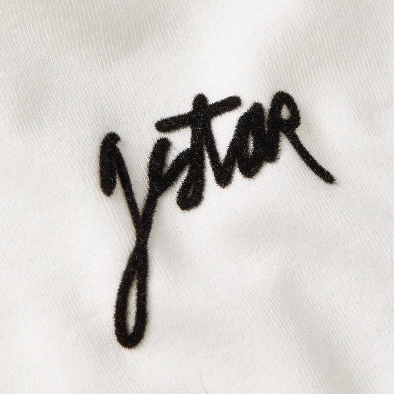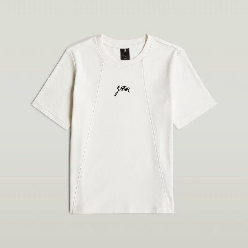 The Script T-Shirt features a round neck and short sleeves, adorned with a graphic detail.