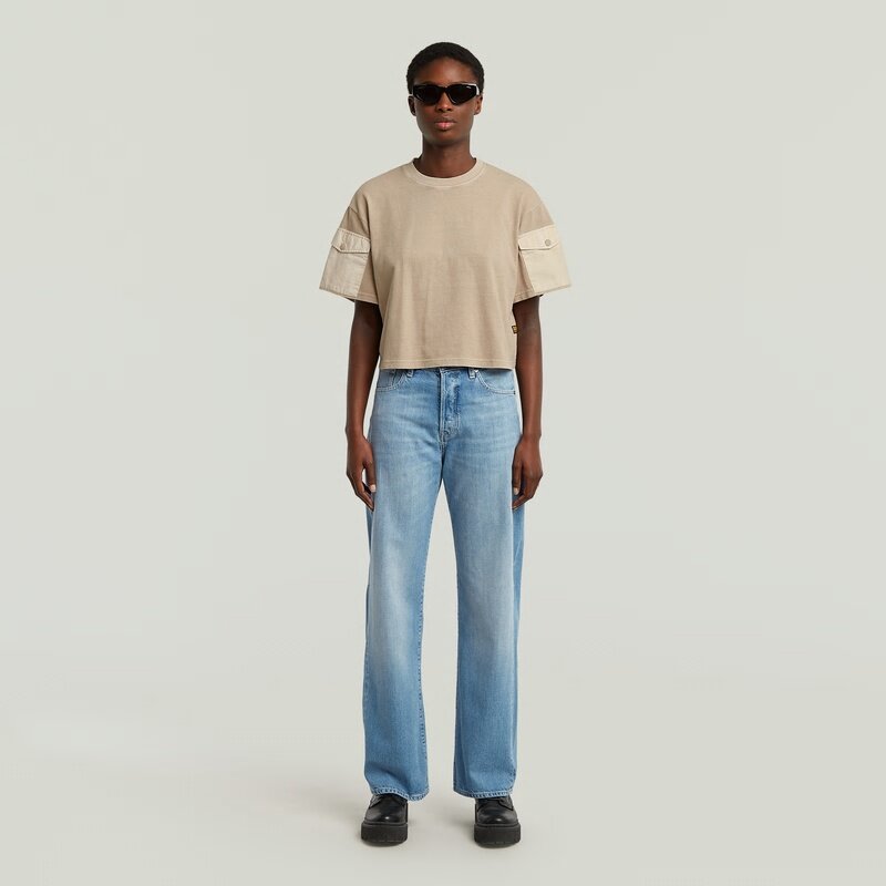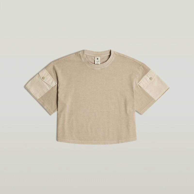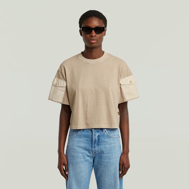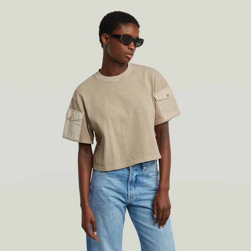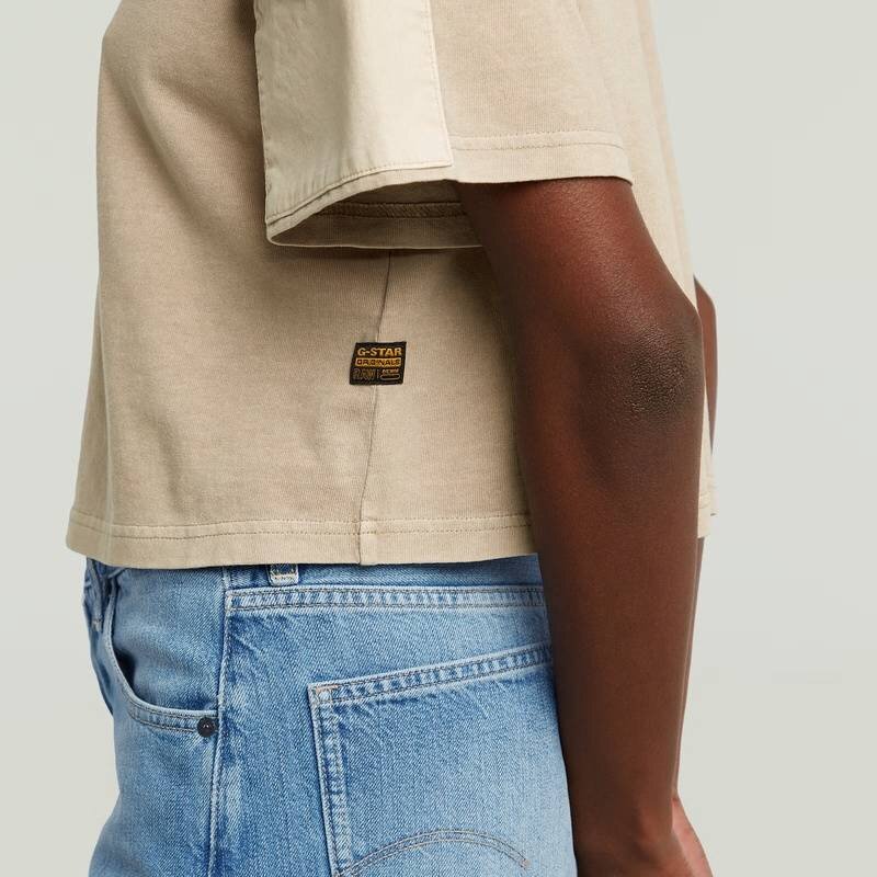 The Washed Mix Boxy Cropped T-Shirt features a relaxed fit with short sleeves and a round neck, offering a casual look.