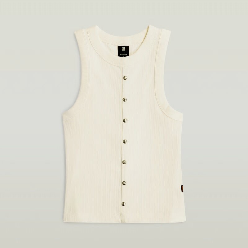 The Heritage Hardware Slim Tank features a sleek racerback design and a round neckline, offering a modern and streamlined look.
